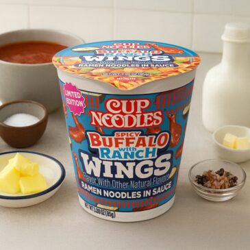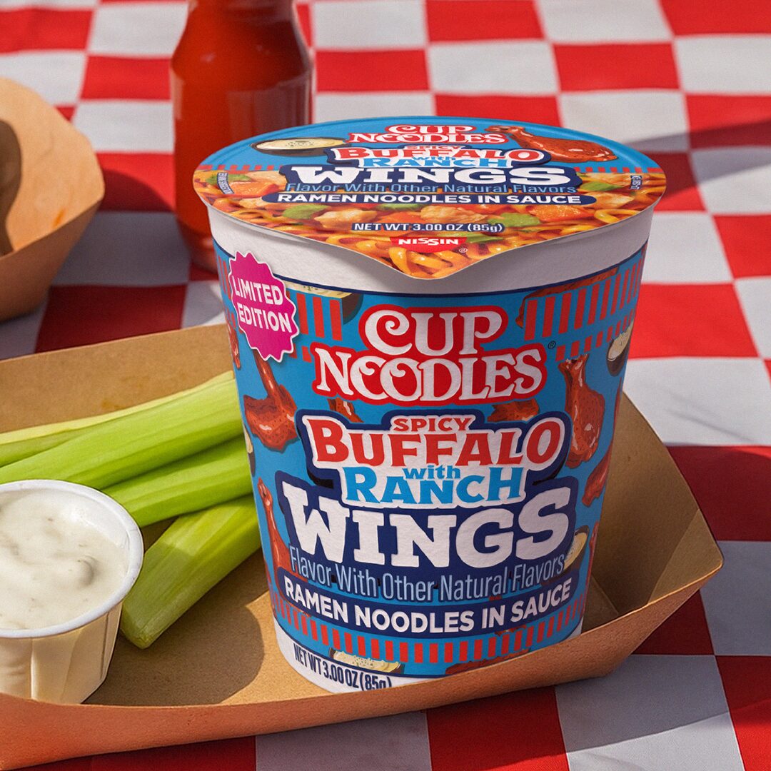 The newest limited-time flavor is here, Cup Noodles® Spicy Buffalo with Ranch Wings. This game day inspired mash-up features ramen noodles infused with the bold heat and tang of buffalo sauce, perfectly balanced by the creamy, herby flavor of ranch. Enjoy all the craveable wing flavors you love in a convenient, soupless, mess-free cup. No added MSG or artificial flavors. Microwavable and ready to enjoy in minutes. Available exclusively at Walmart.